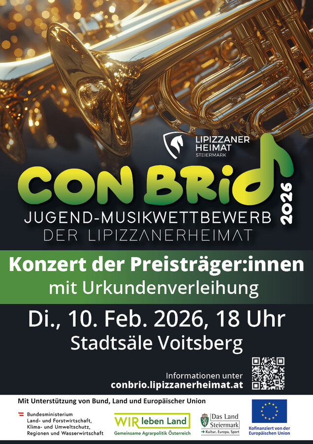 Der Jugend-Musikwettbewerb „Con brio“ der Lipizzanerheimat lädt Kinder und Jugendliche ein, die Freude am Musizieren und an musikalischem Wettstreit haben. Ziel ist es, jungen Talenten eine Bühne zu geben, sie zu fördern und ihnen die Möglichkeit zur Begegnung mit anderen musikbegeisterten Jugendlichen zu bieten.